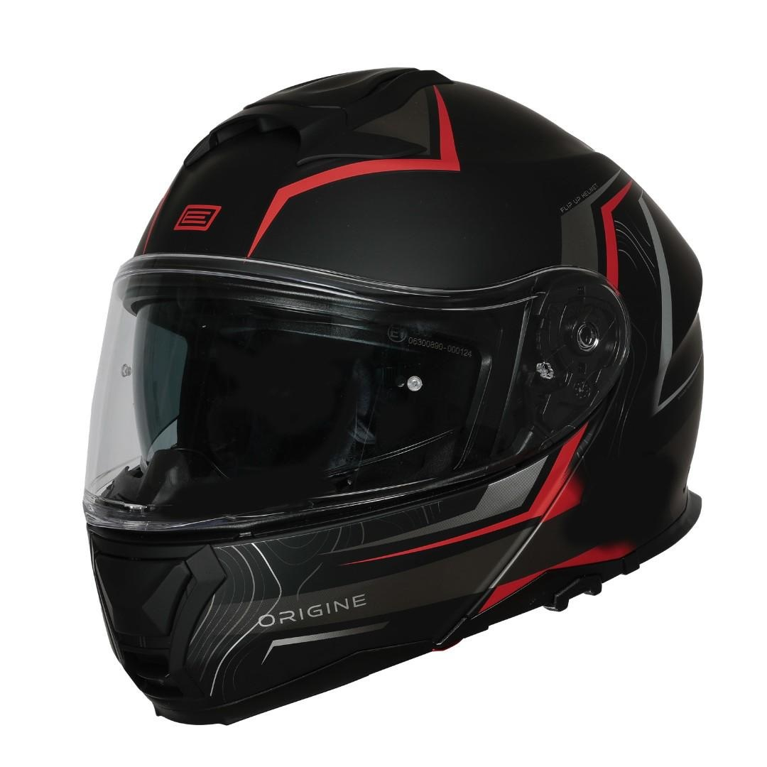 Casca moto Origine Logic Path rabatabila cu ochelari, culoare negru/rosu, marime L